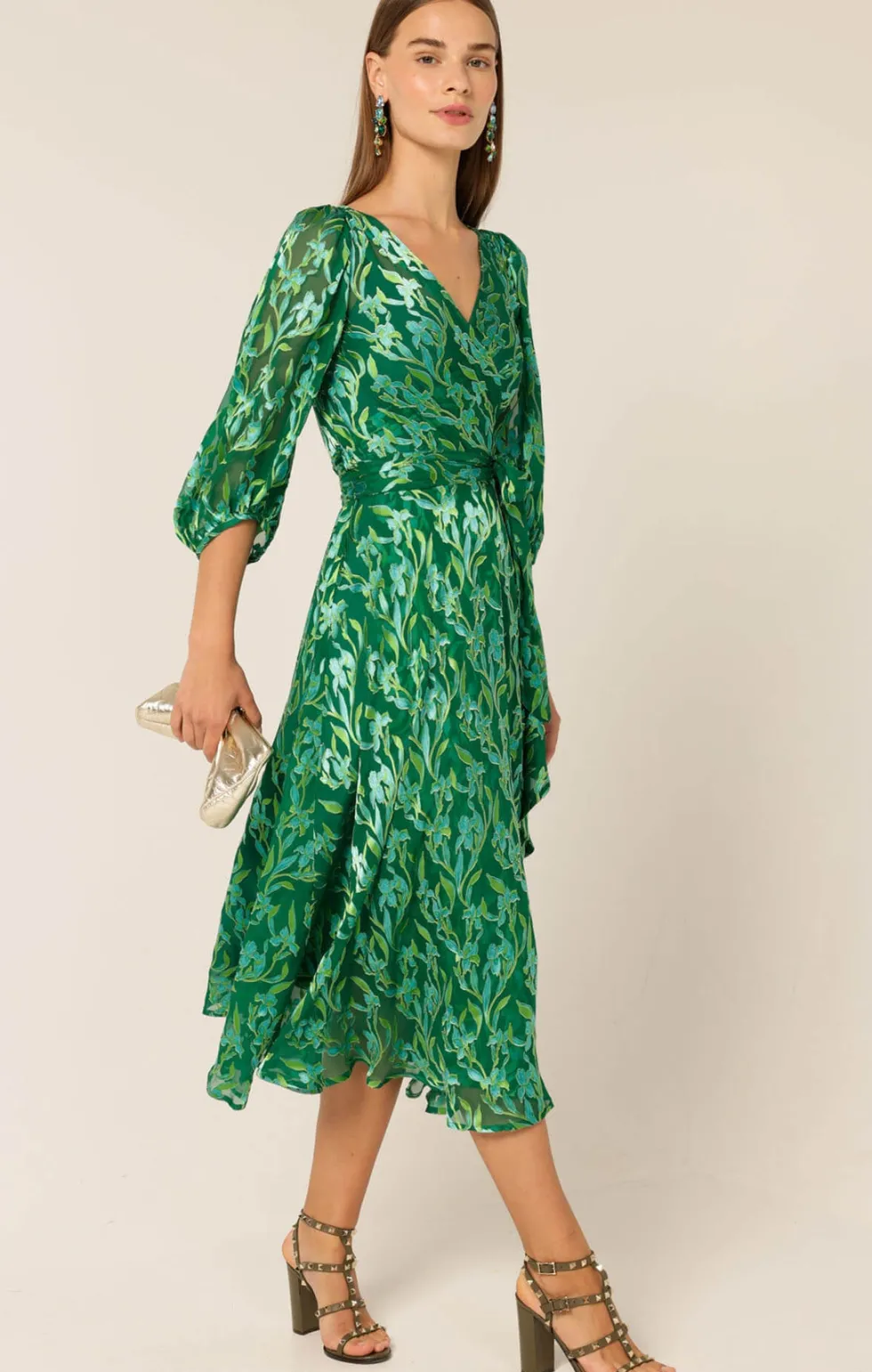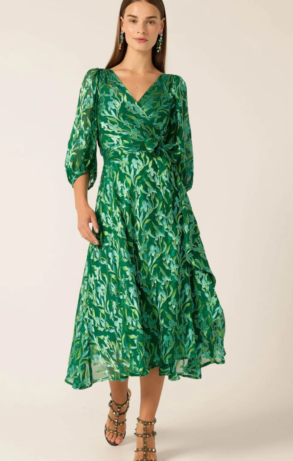 Orchid Wrap Dress D23-S25 – by Sacha Drake at The Wardrobe The Orchid Wrap Dressfeatures SACHA DRAKE’s iconic wrap design in a luxurious silk rayon fabric, complete with bloused 3/4 sleeves and a flattering hi-lo silhouette. It comes with a stretch jersey slip which can be reversed for extra bust coverage, and is the