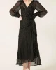 TheCalais Wrap Dress by Sacha Drake at The Wardrobe,exudes elegance with its silk-rayon burnout fabric in a chic polka dot print, complete with our signature wrap design. Featuring a fluted skirt, gathered sleeves, and a slight hi-lo hemline, this ankle length dress is perfect for sophisticated events. • Silk rayon b